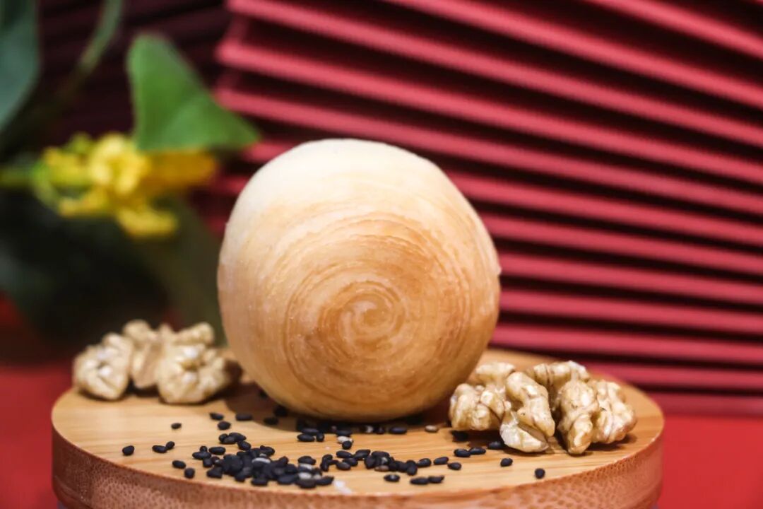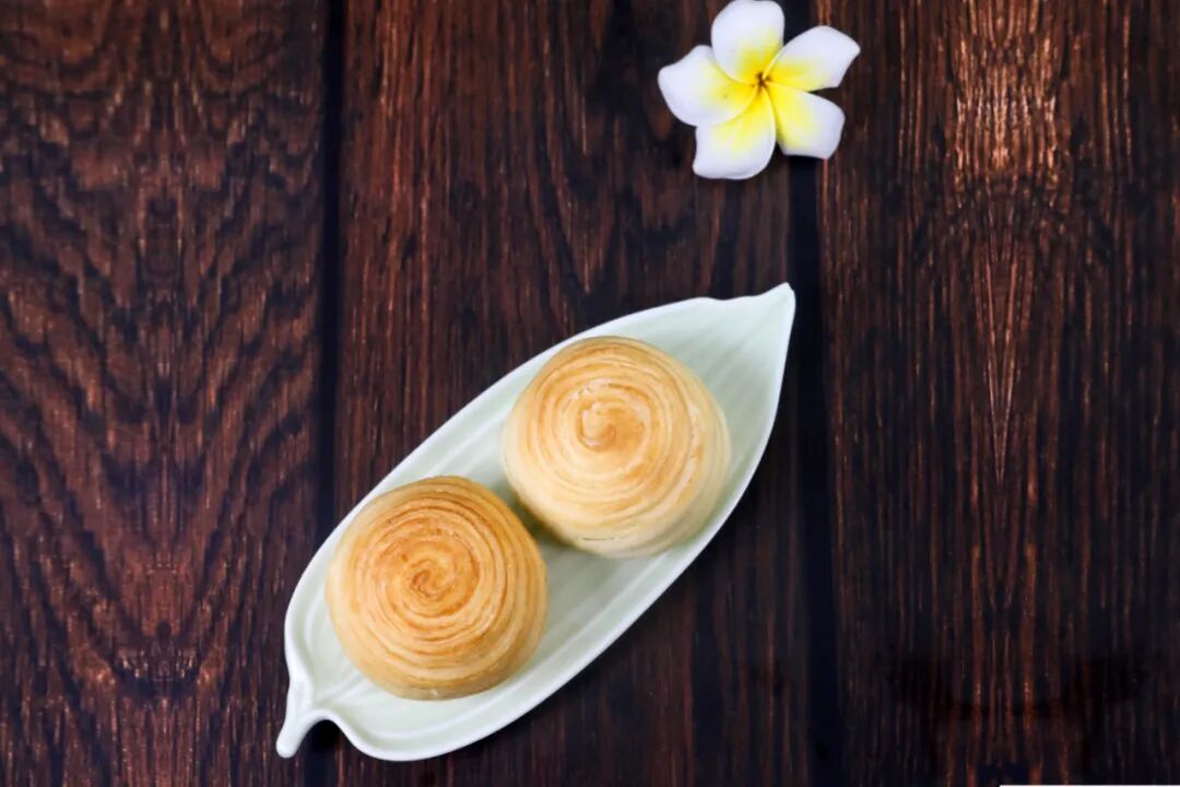 一枚传统酥皮月饼必须通过手工不断地揉捏才能层层起酥,呈现出酥皮特有的螺旋状纹路,酥皮具有少糖少油。